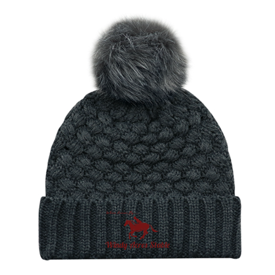 Keep warm in style with this jacquard bubble knit pom toque.