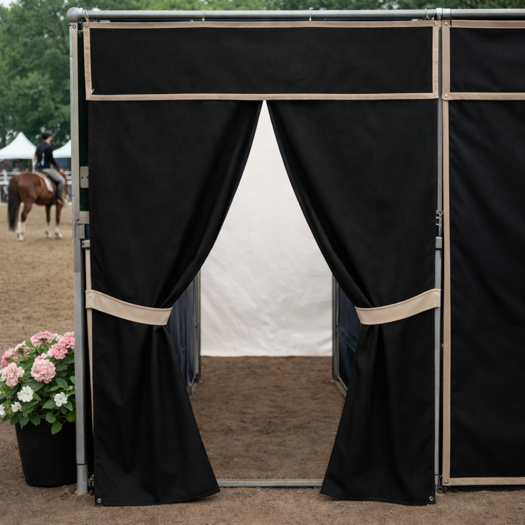 Transform your stable or show setup with our elegant horse stall drapes. Crafted from